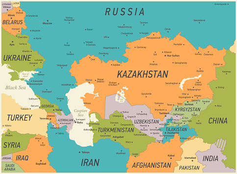 Caucasus And Central Asia Map Vector Illustration With Kazakhstan